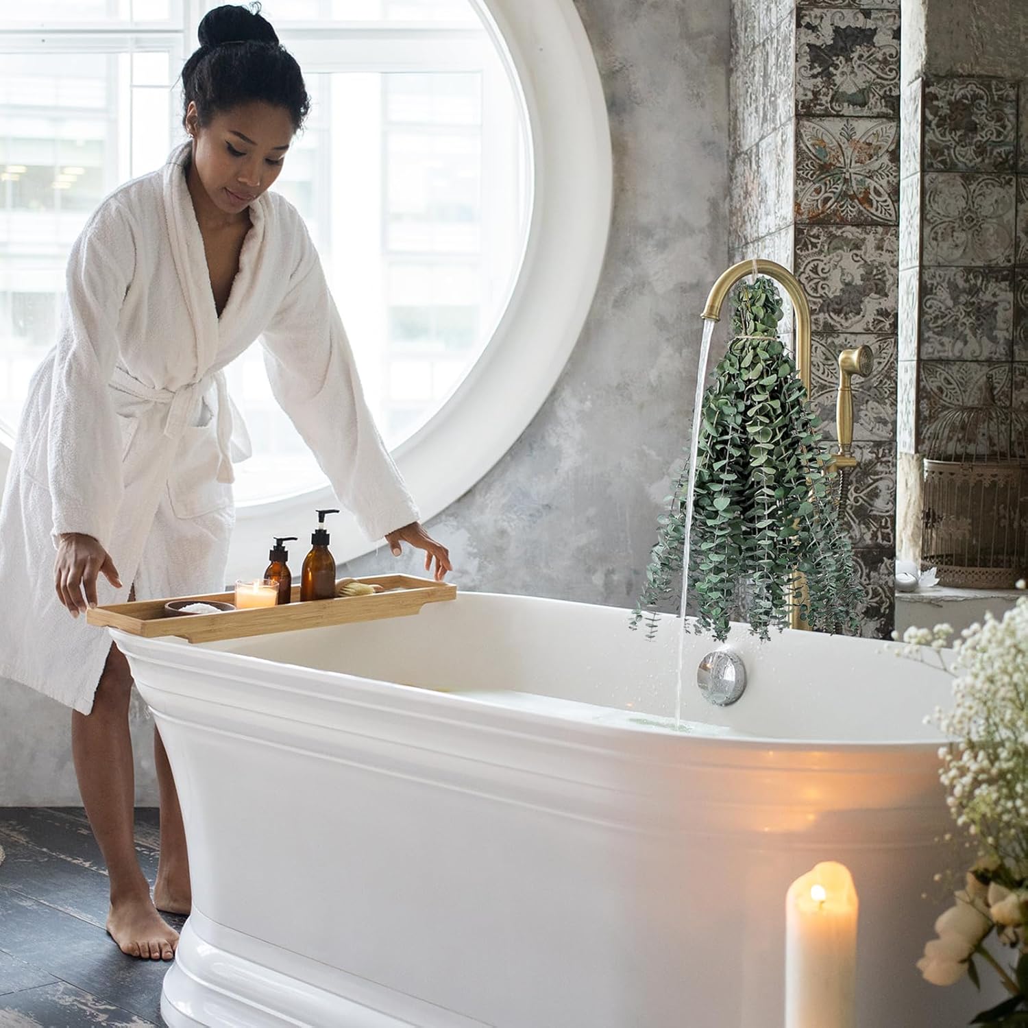 Immerse yourself in the invigorating, refreshing scent of eucalyptus. Inhale deeply and let the aromatic magic uplift your spirits, clear your mind, and enhance your overall well-being.Pure and Natural: Our eucalyptus stems are hand-picked from the finest sources, ensuring unmatched purity and potency. Experience the authentic essence of eucalyptus, free from additives or artificial fragrances.Invigorating Aromatherapy: Immerse yourself in the invigorating, refreshing scent of eucalyptus. Inhale deeply and let the aromatic magic uplift your spirits, clear your mind, and enhance your overall well-being.Home Spa Bliss: Bring the spa to your doorstep with our eucalyptus stems. Unwind, rejuvenate, and pamper yourself with the natural essence of eucalyptus. Elevate your self-care routine today!Wellness Benefits: Eucalyptus has been cherished for centuries for its natural healing properties. It can help ease congestion, reduce stress, and promote a sense of calm and balance. Treat yourself to a holistic wellness experience.Easy to Use: Simply hang our eucalyptus stems in your shower, immerse them in your bath, or place them in a vase. Let the steam activate their soothing properties, turning your space into a sanctuary of relaxation.