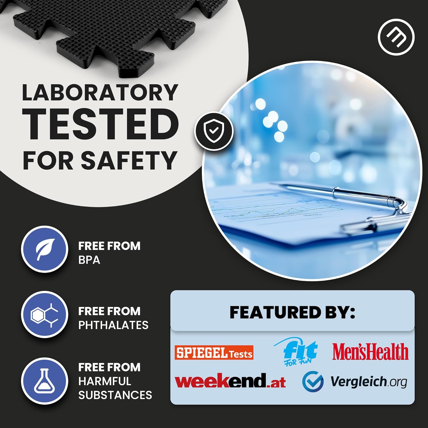 💪 #𝟭 𝗣𝗥𝗢𝗧𝗘𝗖𝗧𝗜𝗩𝗘 𝗙𝗟𝗢𝗢𝗥 𝗠𝗔𝗧 𝗦𝗘𝗧 𝗪𝗜𝗧𝗛 𝟭𝟴 𝗣𝗨𝗭𝗭𝗟𝗘 𝗣𝗜𝗘𝗖𝗘𝗦 + EDGE PIECES FOR PERFECT FLOOR PROTECTION – protect your floor from scratches, knocks, dents, cold, noise, sweat and other fluids with probably the best and most secure protective floor mat available on the market. Completely BPA-free for your safety and well-being.