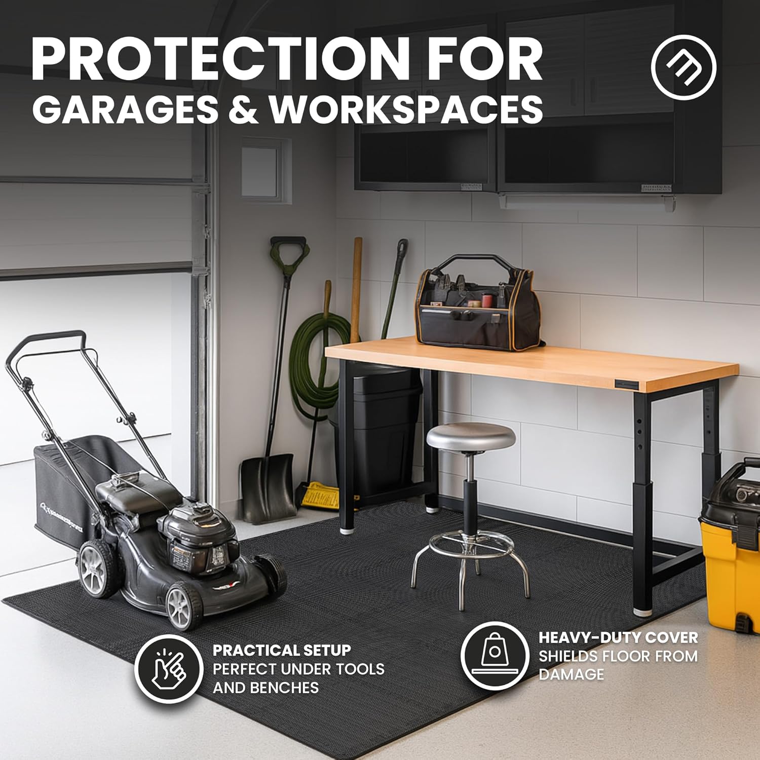 💪 𝗛𝗜𝗚𝗛-𝗤𝗨𝗔𝗟𝗜𝗧𝗬, 𝗗𝗨𝗥𝗔𝗕𝗟𝗘, 𝗥𝗘𝗟𝗜𝗔𝗕𝗟𝗘 – the highly compressed, environmentally friendly, non-toxic EVA foam with anti-slip surface is perfect as floor layering for fitness and gym spaces, under sports equipment, work spaces, garages, basements and more. The mat’s premium lightweight material also makes it noise- and impact-dampening, warmth-insulating, waterproof, long-lasting and easy to clean with soap and water.