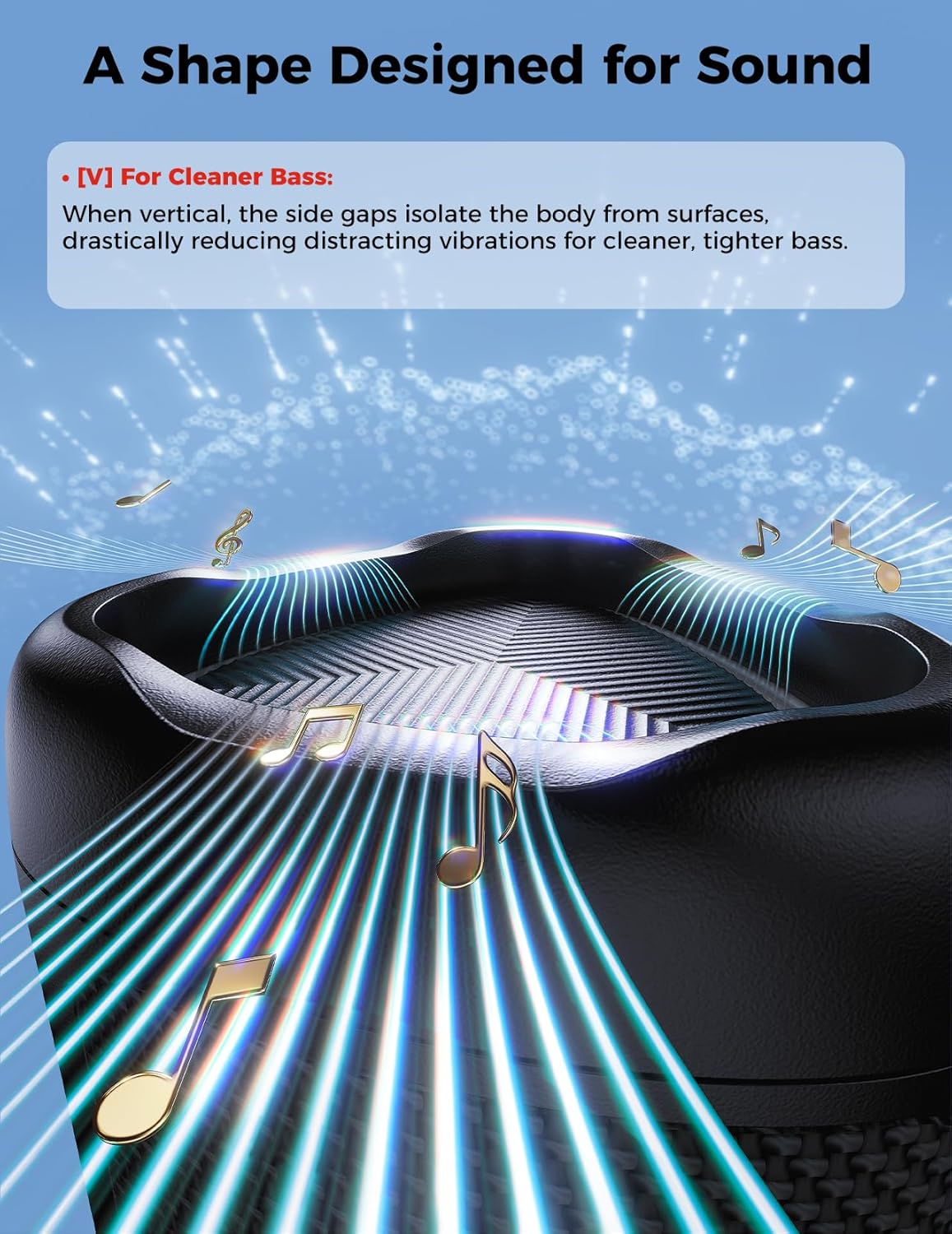 [Long-lasting Playtime & Extended Bluetooth Connectivity] Experience extended playtime with up to 20 hours(50% Vol and light off) per charge and extended wireless range with Bluetooth 5.3, reaching up to 33 feet from your device. The multicolor lights on the speaker can also be turned off with a simple button press to save the battery and adapt to your needs. Keep in mind that the actual playtime can vary depending on volume level, audio content, and usage