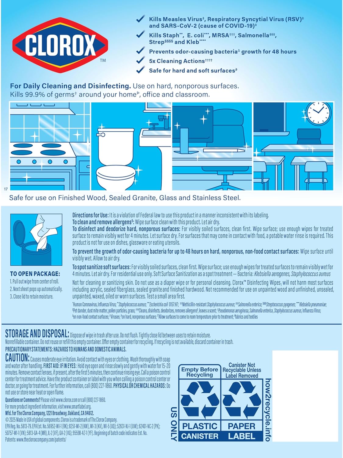 Clean feels good when you clean with Clorox Disinfecting Cleaning Wipes, now with new sparkling scents. Perfect for spring cleaning and allergy season, these Clorox Disinfecting Cleaning Wipes help reduce allergens while delivering powerful disinfection. This convenient multi-surface wipes variety pack includes Fresh Scent and Crisp Lemon, ideal for tackling seasonal deep cleaning tasks throughout your home. Safe to use on over 100 surfaces, including finished wood, sealed granite, glass and stainless steel make kitchen and bathroom cleaning easy, these antibacterial wipes kill 99.9% of germs and are perfect for quick cleanups. Great for allergy season cleaning, they help remove dust and allergens from surfaces while leaving them fresh and clean. Our bleach-free formula is safe on multiple surfaces and leaves no harsh chemical residue. Ideal for spring cleaning tasks, these sanitizing wipes are perfect for households needing convenient, no-rinse cleaning solutions.
