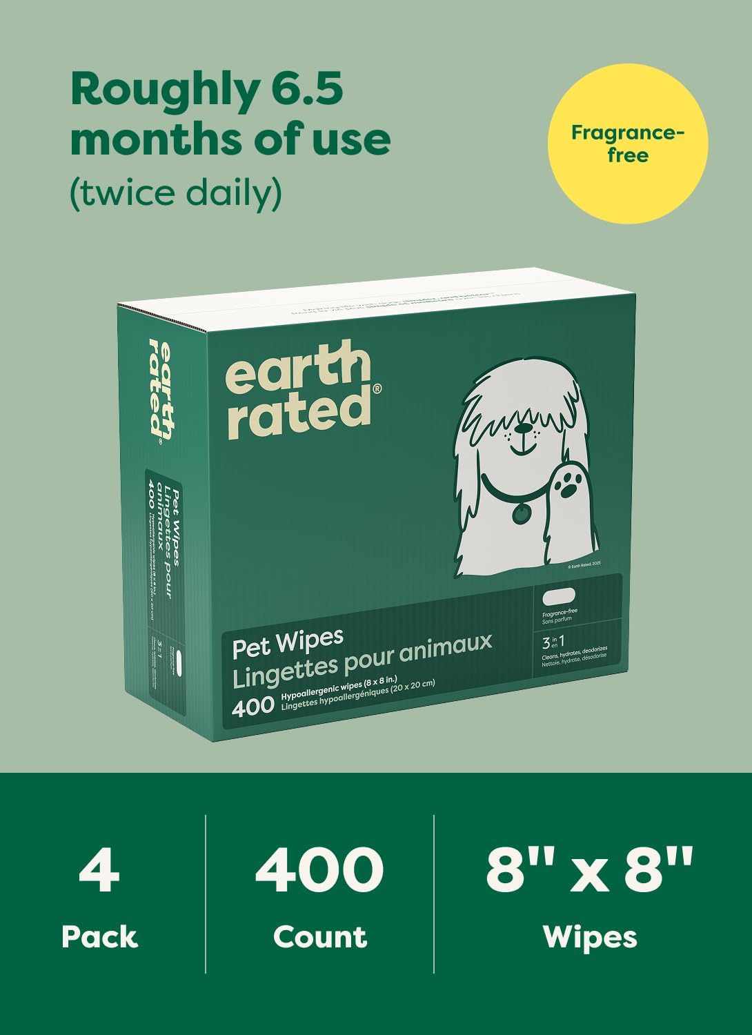 Be the first to review “Earth Rated Pet Wipes for Dogs and Cats, Hypoallergenic, Cleaning and Hydrating, for Grooming Paws, Body and Butt, Unscented, 400 Count”