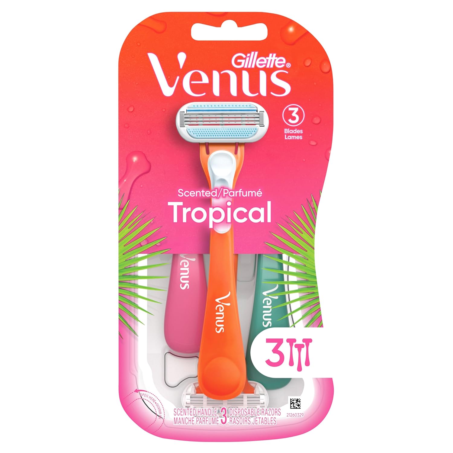 DISPOSABLE RAZORS: Venus Tropical women’s disposable razors. No refills needed