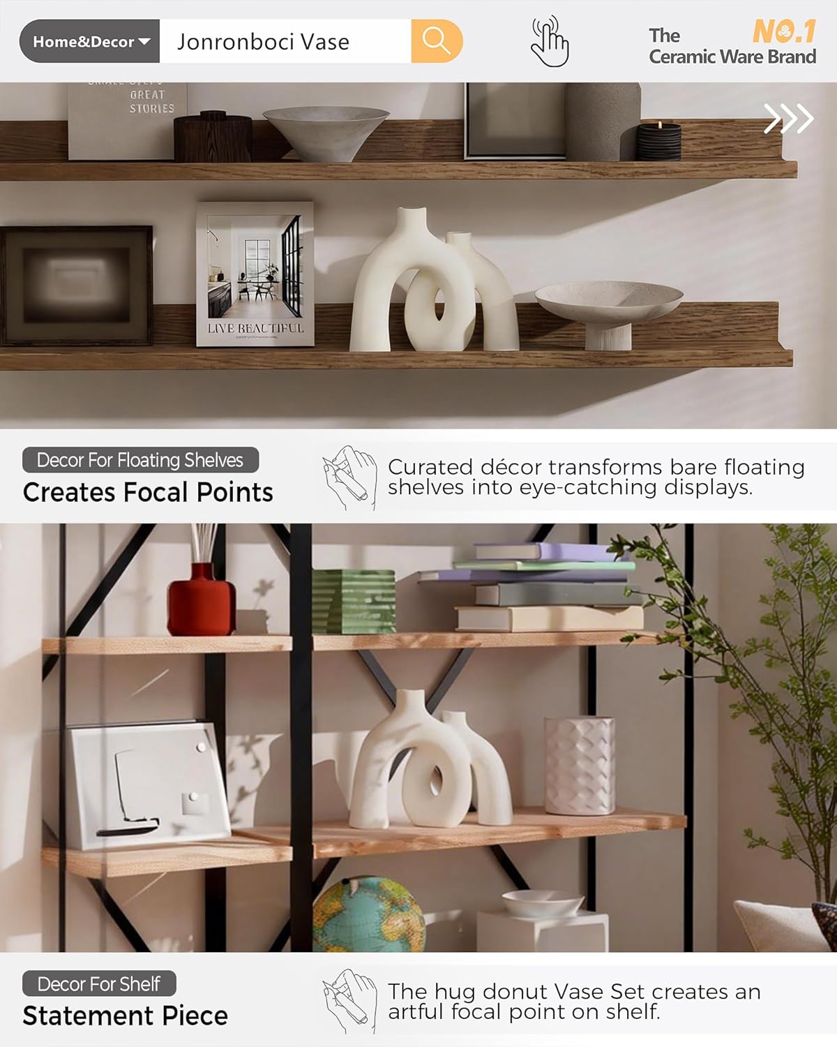 Be the first to review “Hug Donut Decorative Vase Set – Modern Nordic Boho Style Vases Home Decor, Matte Ceramic Decorations for Living Room Shelf, Bookshelf Mantle Entryway Table or Console Décor (Cream White)”