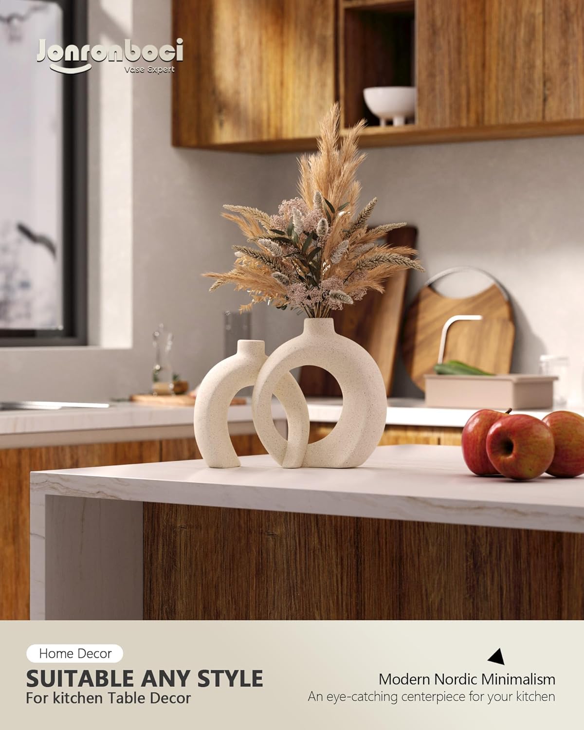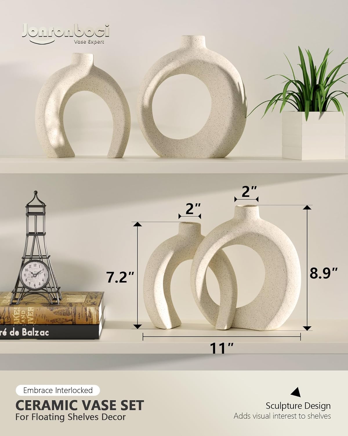 Versatile Scale Perfectly Proportioned for Any Modern Space—H8.9″ × W6.5″ × D2.4″ / H7.2″ × W6.5″ × D2.4″. These beautiful, cream-color decorative vases create a striking visual statement without occupying too much space. Perfect as table vase or for shelves, mantel, coffee table, console table, dining table centerpiece, kitchen island, entryway table, and floating shelves, adding a balanced focal point and aesthetic charm to any room.