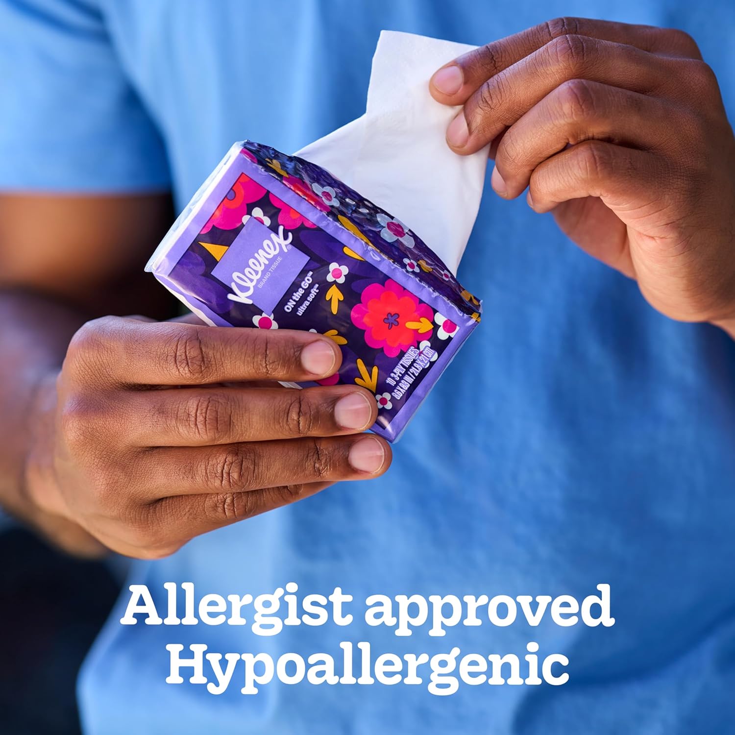 Runny noses can happen anywhere. Stay prepared with Kleenex On-the-Go Facial Tissues. Small enough to fit in pockets, purses, backpacks or travel bags, these Kleenex tissues are made with 3 thick layers and Clean Shield technology that helps contain the mess 3x better than the leading value toilet paper. Our facial tissues are also soft, durable, and ultra-absorbent for runny noses and watery eyes to help you stay prepared wherever you are. Each tissue pack contains 10 total 3-ply tissues and comes in various colors and designs. For whatever happens next, Grab Kleenex. Packaging may vary.