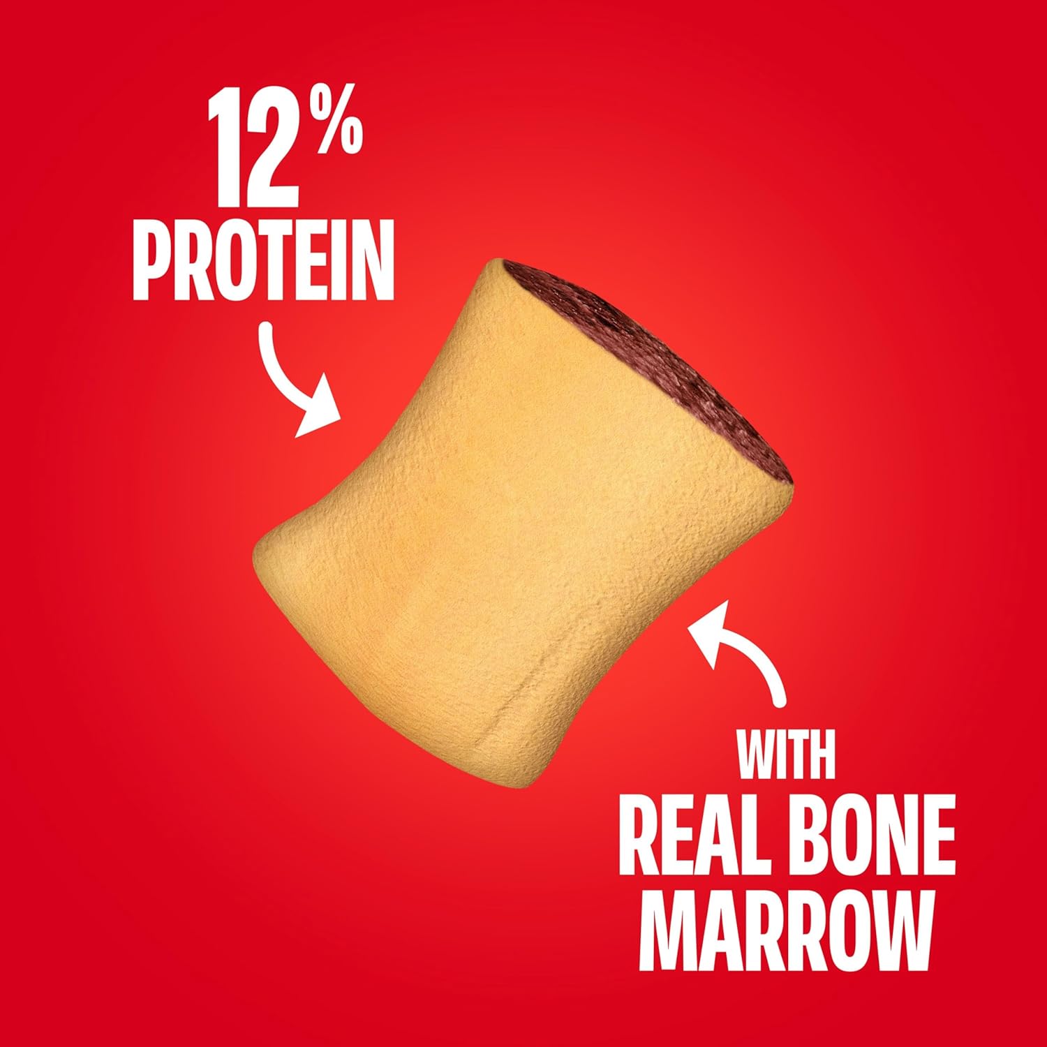 CRUNCHY OUTSIDE, MEATY INSIDE: A dog biscuit with a satisfying combo of texture and mouthwatering flavor