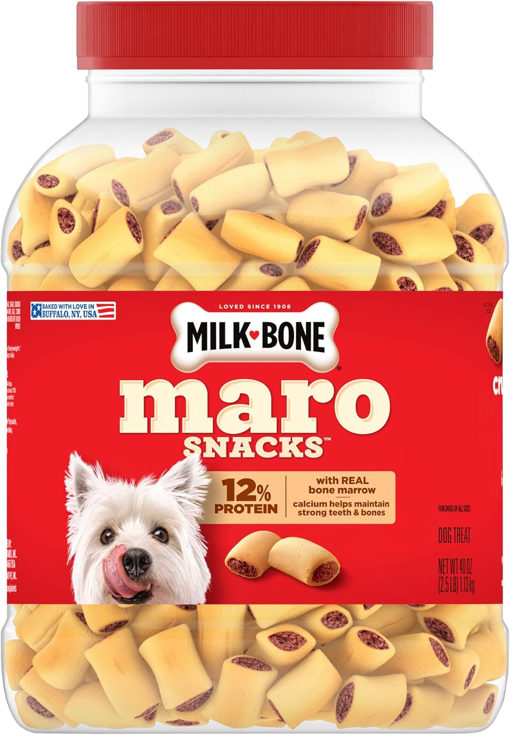 CONTAINS: One 40-oz. canister of Milk-Bone MaroSnacks small dog treats with real bone marrow