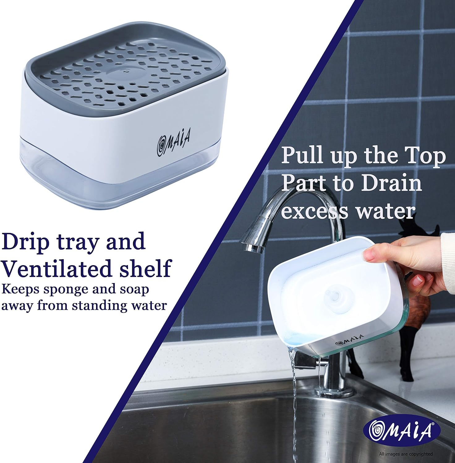 Safe & Economical – Our dual-use sponge holder soap dispenser delivers a fixed amount of soap per pump, minimizing wastage. The product contains no BPAs or any other harmful chemicals.