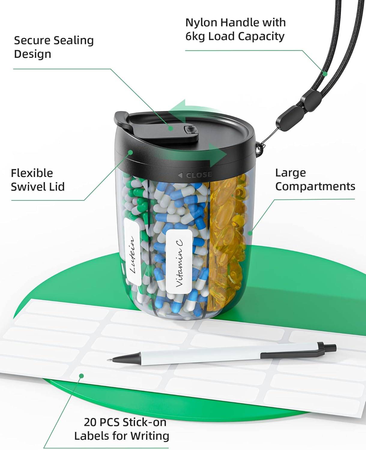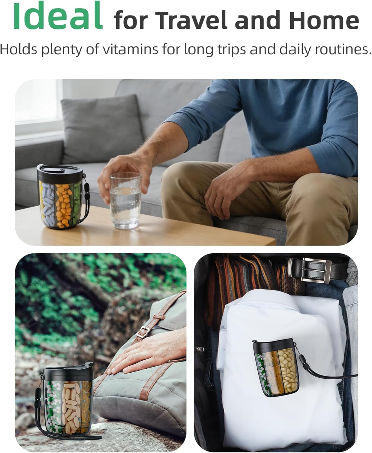 Travel hassle-free: If you are looking for a pill container for long trips, the PULIV travel medication organizer is your ideal travel assistant. The supplement organizer bottle is equipped with a nylon strap handle for a 6kg load, making it easy to carry around with you on the go. Enjoy your relaxing and free travel