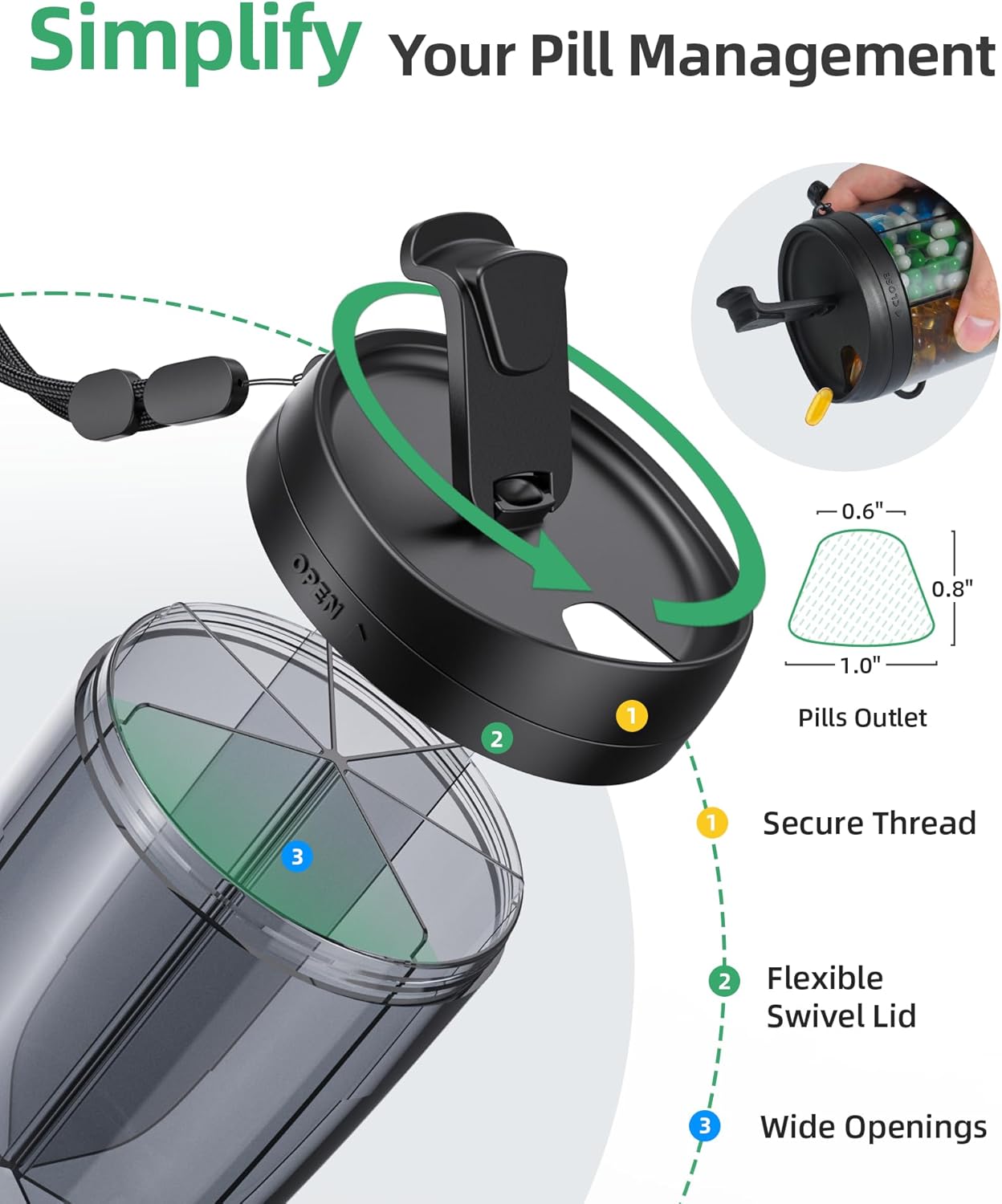 Easy to Retrieve: The smooth-loosing thread and lid can swivel flexibly, and the wide openings are friendly for taking pills. With the above 3 thoughtful and unique designs, the large pill organizer makes filling and taking medication effortlessly