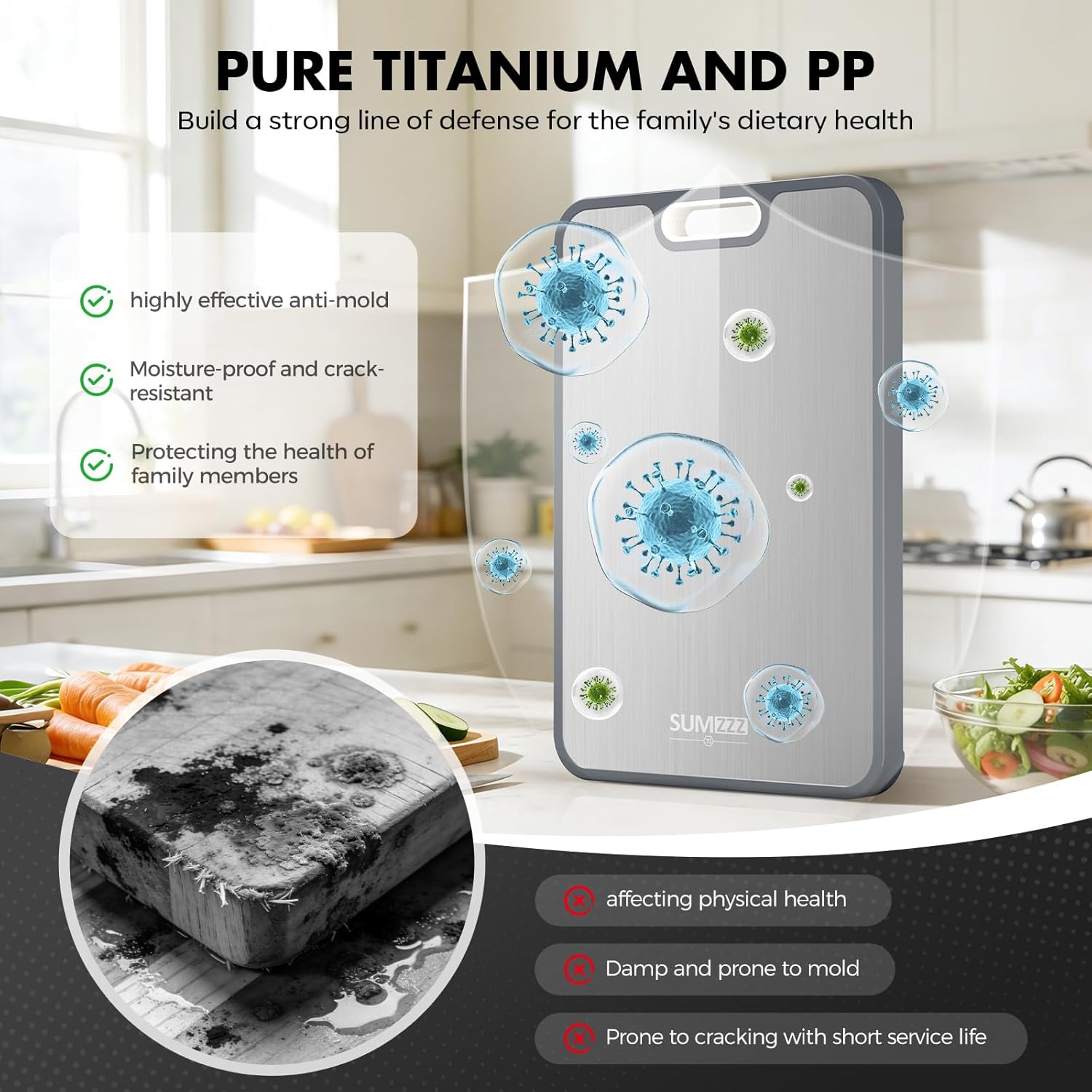 【High Quality】Titanium cutting board completely improves the shortcomings of traditional cutting boards traditional cutting boards are prone to cutting gaps, leaving food residues at the gaps, and absorbing odors and other minor problems.