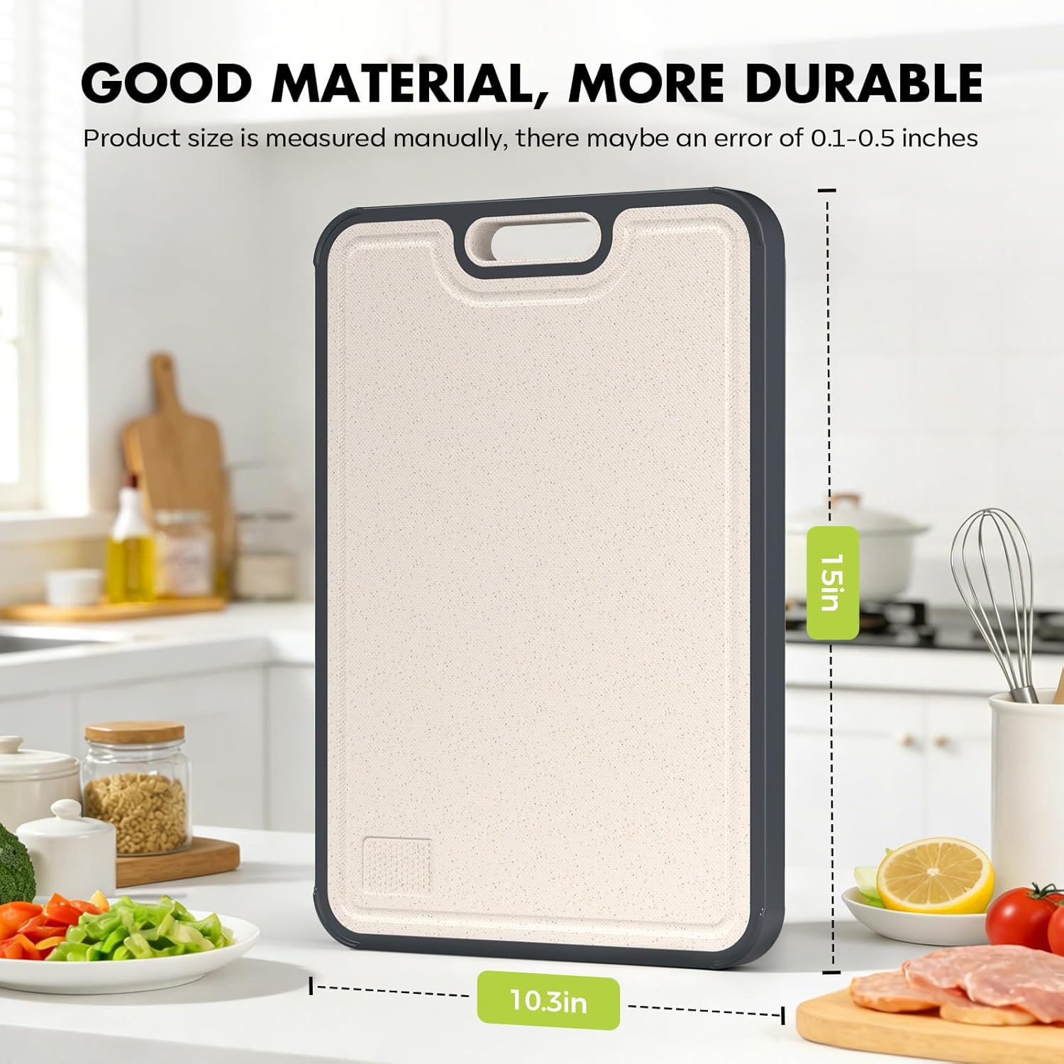 【Easy to clean】The material on both sides is not sticky, you can rinse with water to keep it clean. Please clean the cutting board in time after cutting meat or vegetables and hang it to dry, there is a portable round on the cutting board for easy carrying and hanging.
