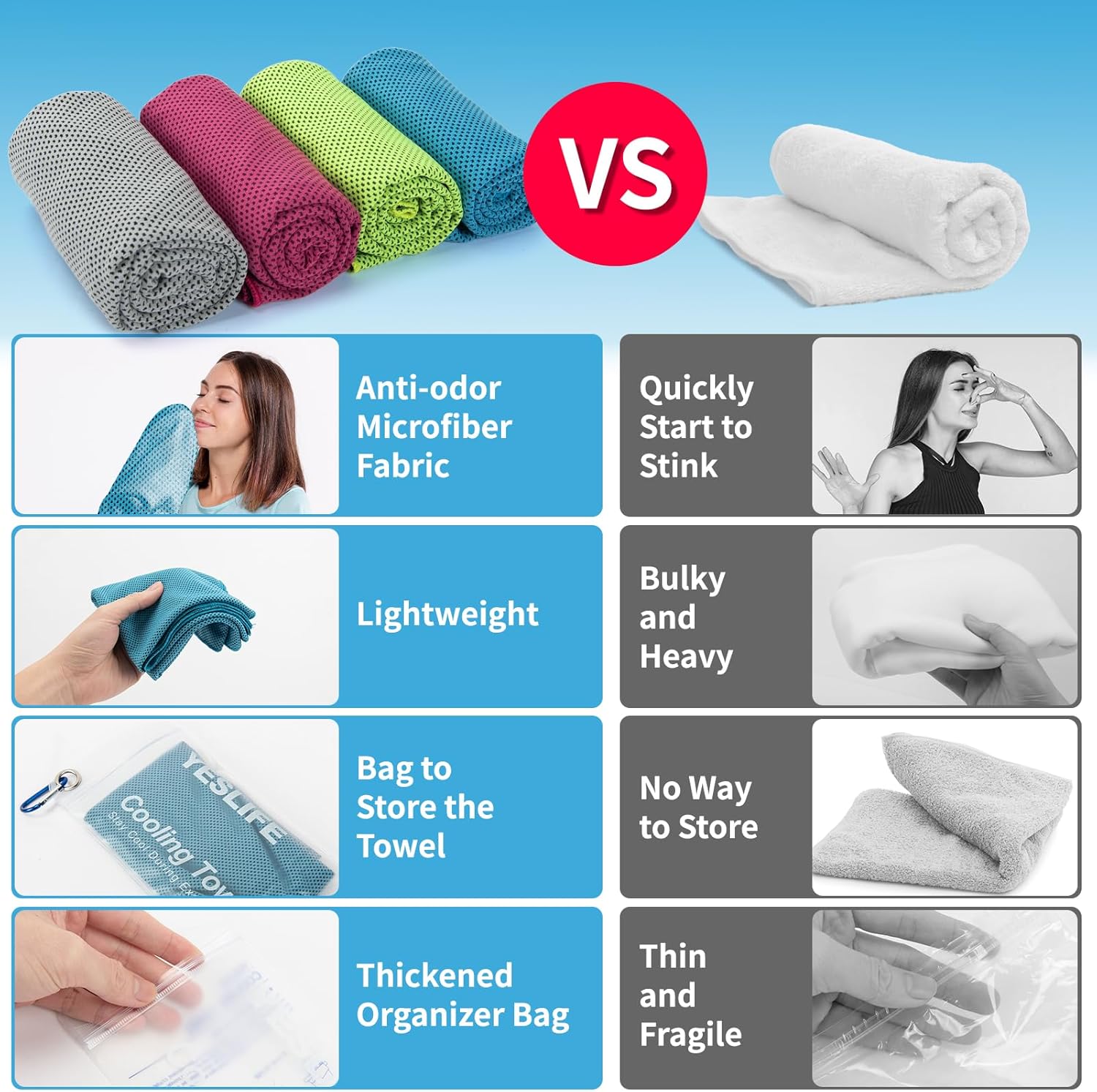 Be the first to review “YESLIFE 4 Pack Cooling Towel 40″x12″, Gym Towels for Men and Women, Soft Breathable Workout Towels for Yoga, Running, Sport, & More (Blue, Grey, Green, Pink)”